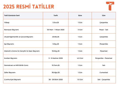 2025 yılı boyunca Türkiye’de kutlanacak resmi tatillerin bazıları şu şekilde: